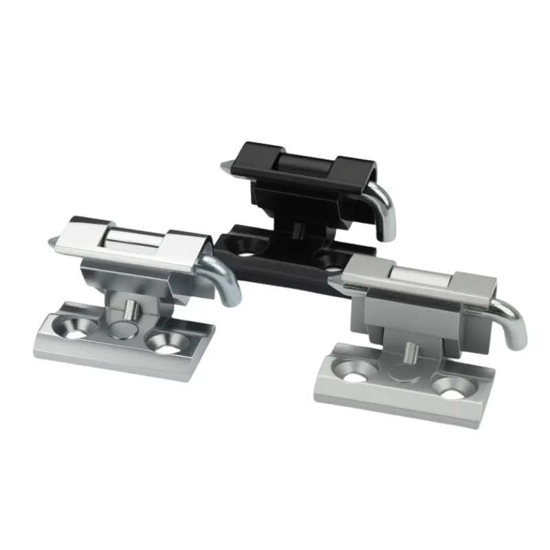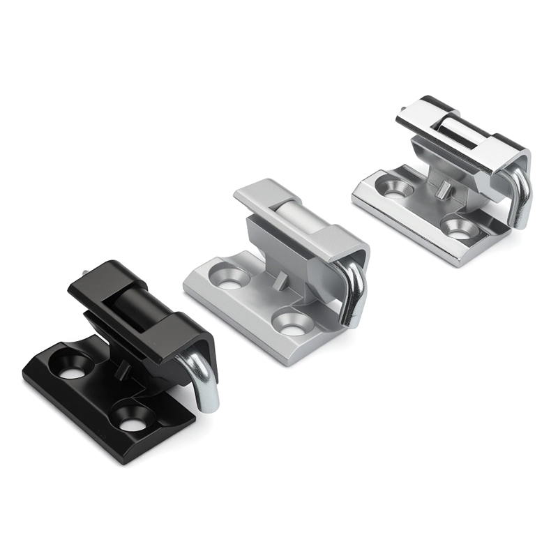 De scharnieren van de elektrische kabinet van het kaarttype zijn gemaakt van aluminiumlegering of zinklegering. Aluminiumlegering is verkrijgbaar in zwart, helder chroom en matte afwerkingen, terwijl zinklegering beschikbaar is in zwarte en matte afwerkingen door een spuitproces en een hogere mechanische sterkte biedt.