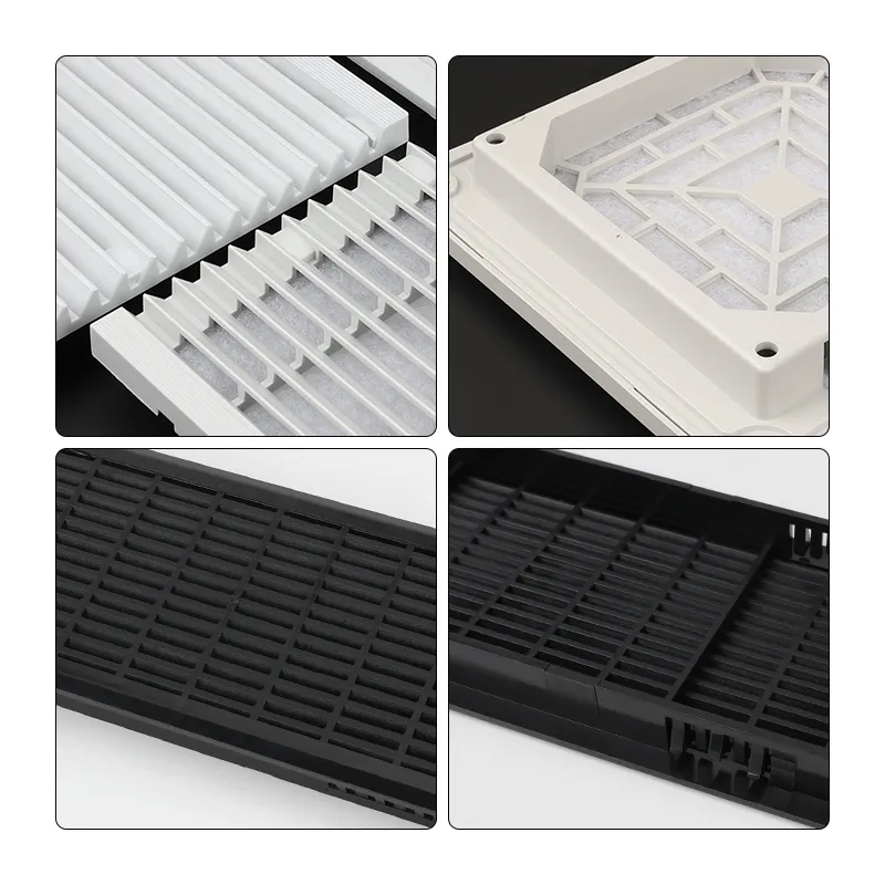 De gaasstructuur en de filterlaag zorgen ervoor dat ventilatieroosters effectief voorkomen dat externe verontreinigingen het interieur van de apparatuur binnendringen, waardoor een veilige en normale werking wordt gegarandeerd. Dit product is vervaardigd uit ABS-materiaal en biedt uitstekende corrosieweerstand en structurele sterkte.